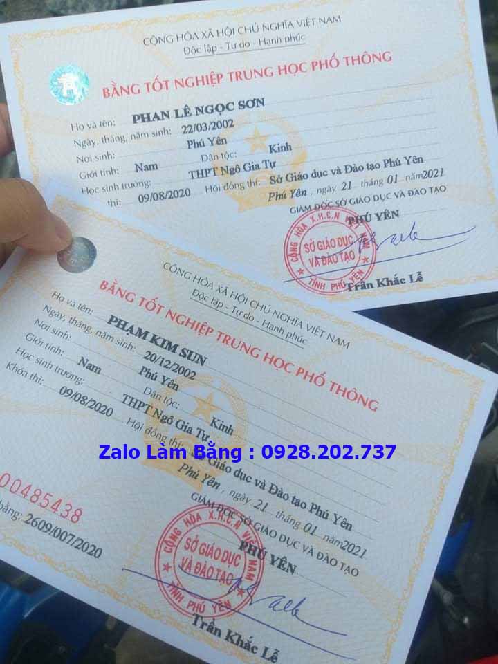 – Bằng THPT – Bằng Cấp 3 Phú Yên gồm đầy đủ hồ sơ, bảng điểm và học bạ. Làm nhanh, giá rẻ, đặc biệt không lấy tiền đặt cọc trước.